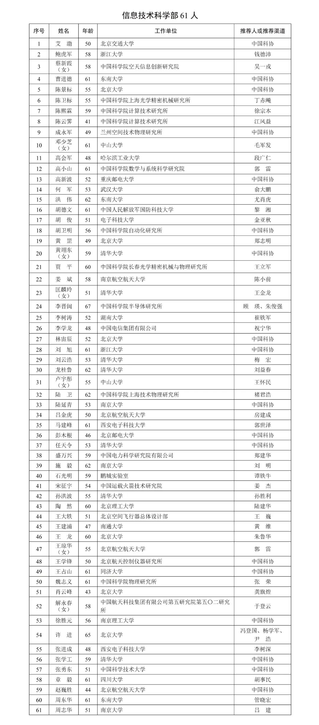 2025年中国科学院院士增选推荐工作已经结束。经中国科学院学部主席团审议,中国科学院党组审定,确认2025年中国科学院院士增选有效候选人639人。根据《中国科学院院士增选工作实施办法(试行)》的规定,现将有效候选人名单予以公布。