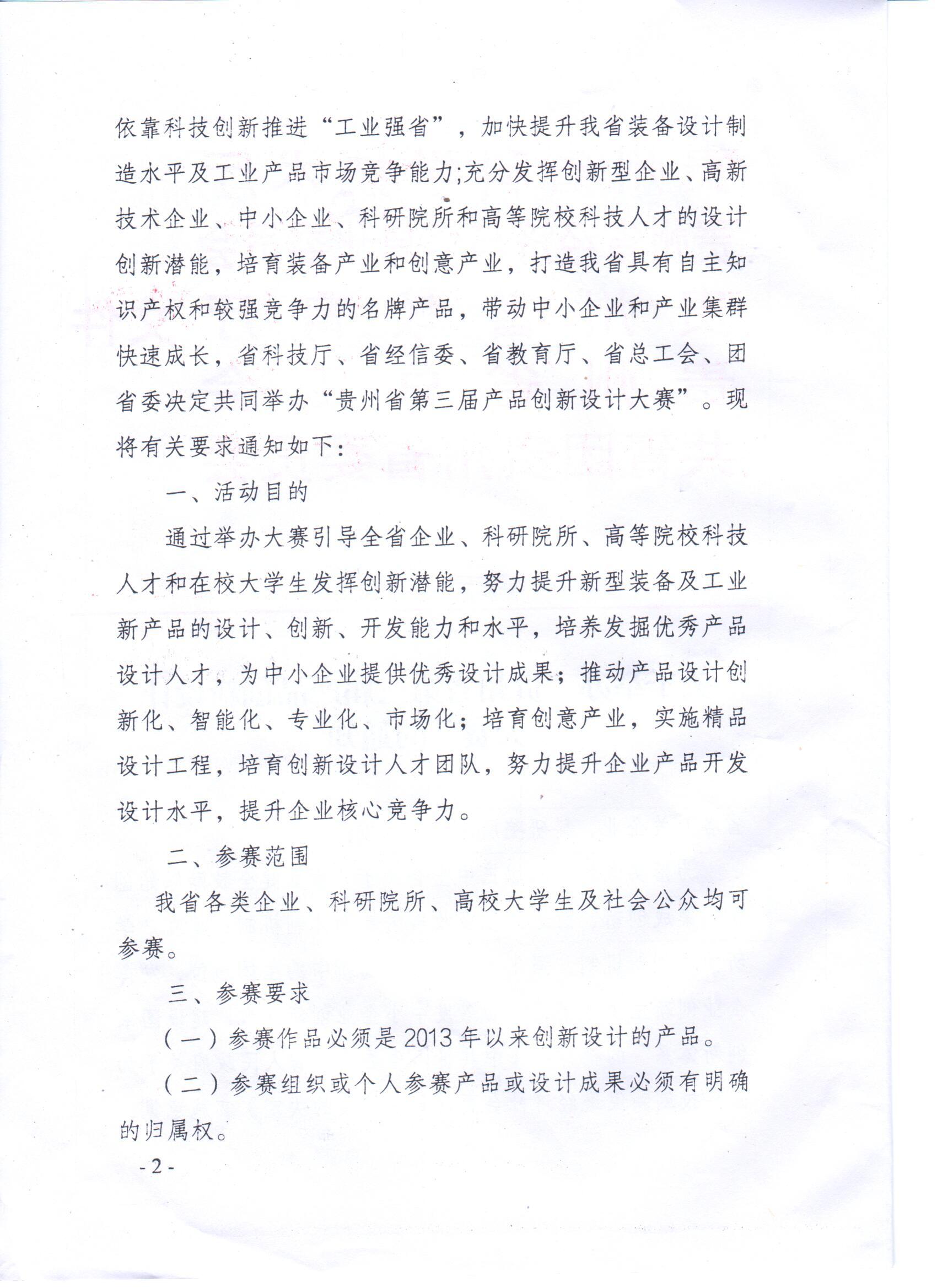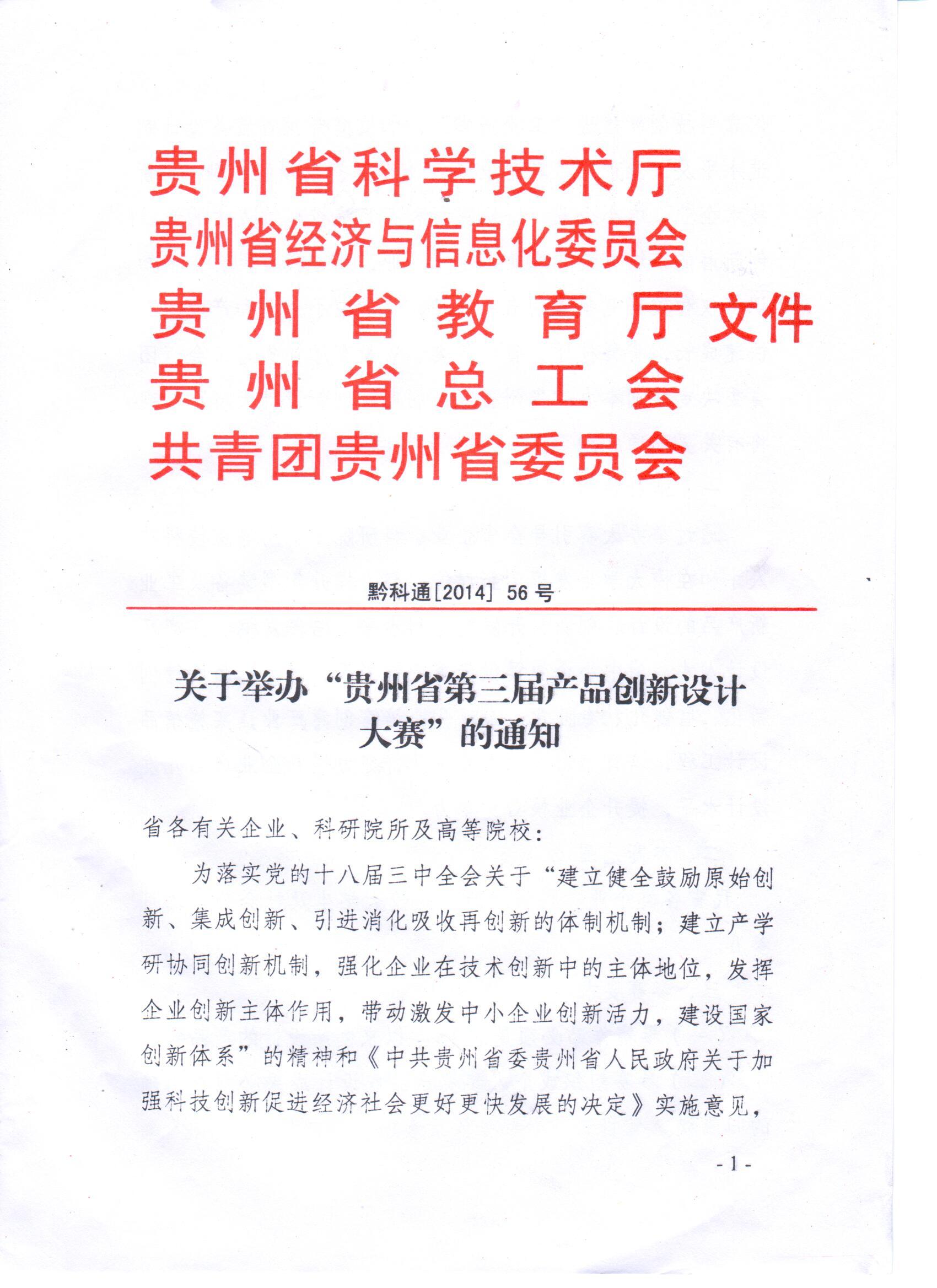 关于举办“贵州省第三届产品创新设计大赛”的通知