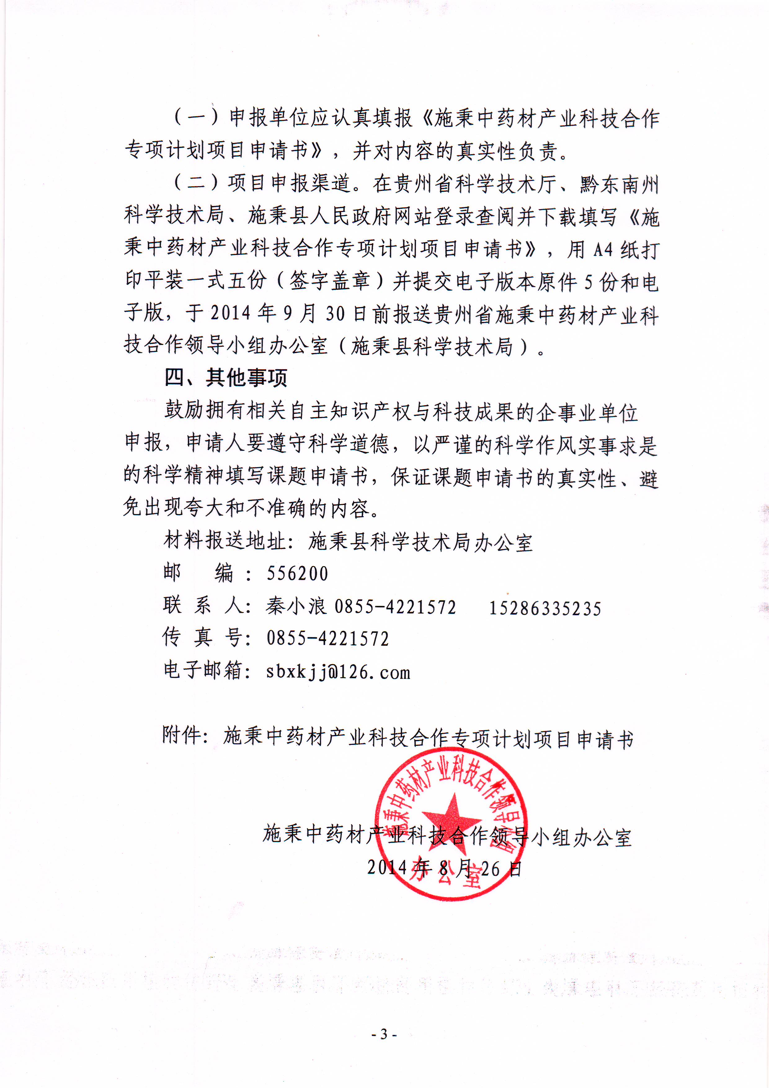 关于申报“2014年度贵州施秉中药材产业科技合作专项计划项目”的通知