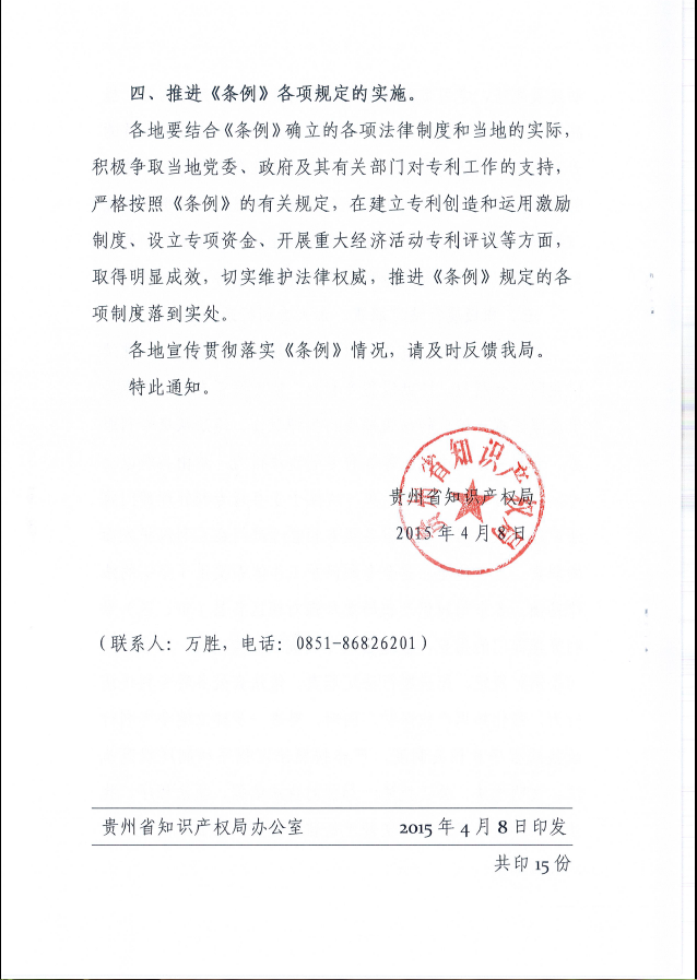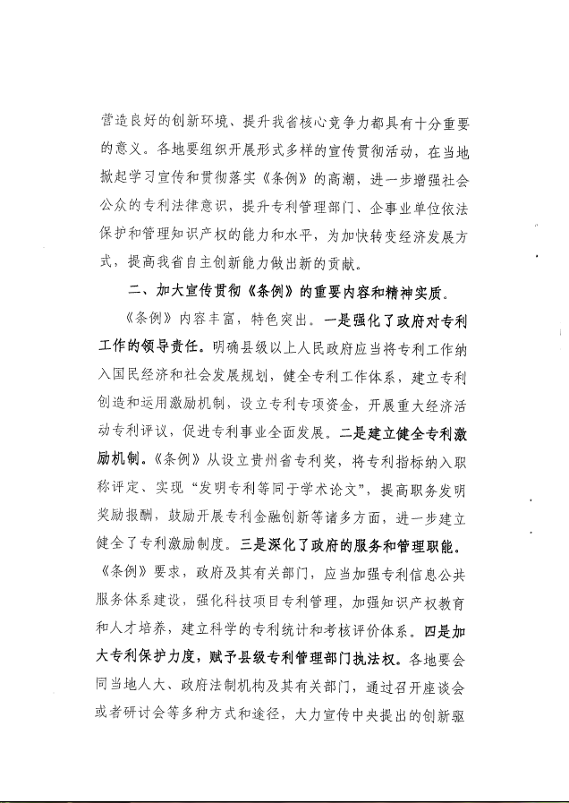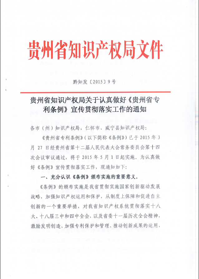 贵州省知识产权局关于认真做好《贵州省专利条例》宣传贯彻落实工作的通知