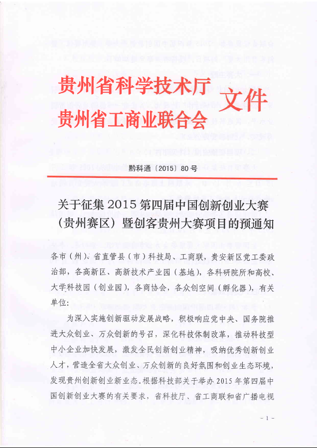 关于征集2015第四届中国创新创业大赛(贵州赛区)暨创客贵州大赛项目的预通知
