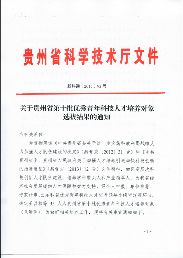 关于贵州省第十批优秀青年科技人才培养对象选拔结果的通知