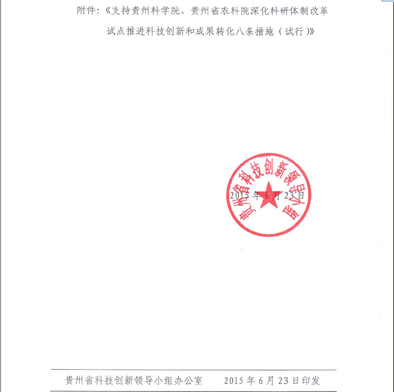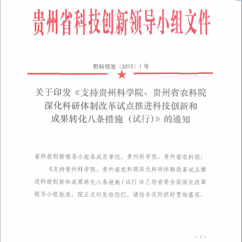 关于印发《支持贵州科学院、贵州省农科院深化科研体制改革试点推进科技创新和成果转化八条措施(试行)》的通知