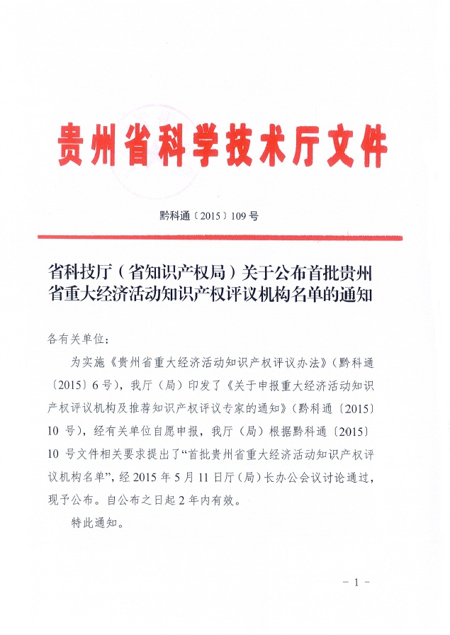 365买球平台(省知识产权局)关于公布首批贵州省重大经济活动知识产权评议机构名单的通知