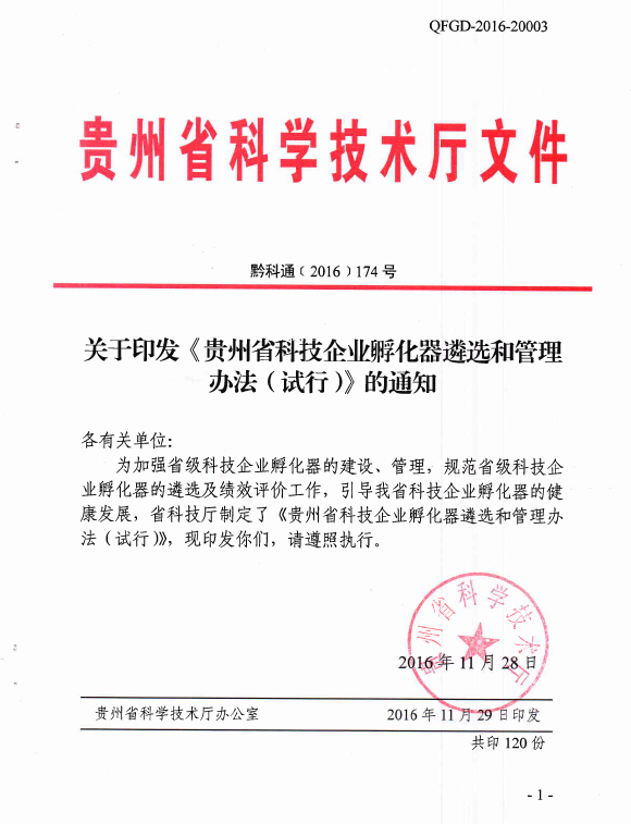 关于印发《贵州省科技企业孵化器遴选和管理办法(试行)》的通知