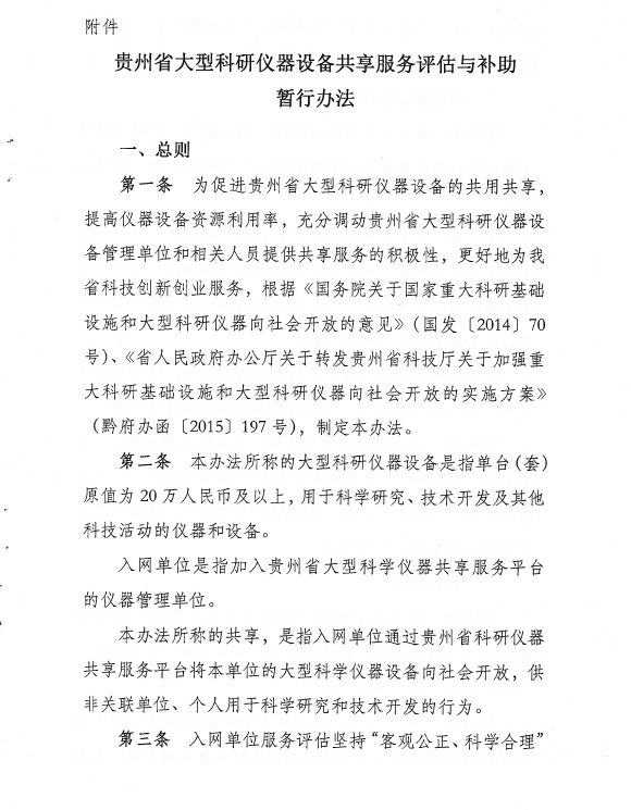 关于印发《贵州省大型科研仪器设备共享服务评估与补助暂行办法》的通知